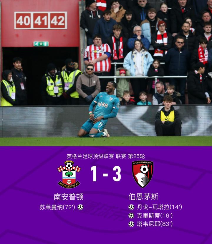 在本场比赛中,南安普顿的阵容在面对伯恩茅斯的进攻时显得力不从心,球队的防线出现了明显漏洞。而伯恩茅斯则利用瓦塔拉和塔韦尼耶等球员的出色表现,成功将比赛掌控在自己手中,展现出了强大的实力和统治力。双方球员在场上拼尽全力,为球迷们呈现了一场精彩的足球对决。